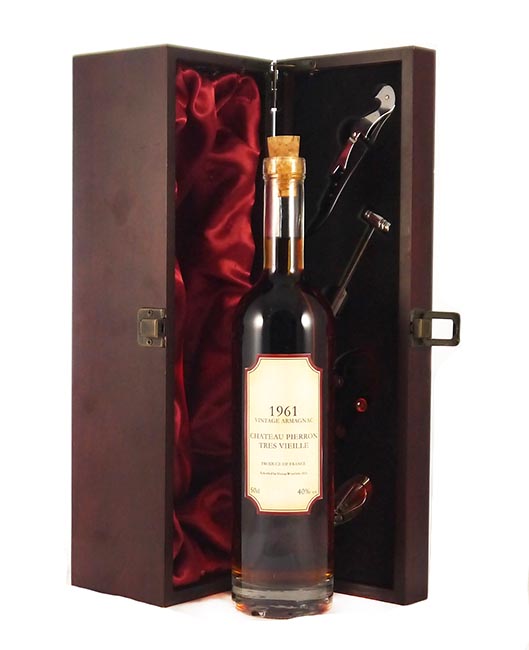 So that customers can appreciate very old vintage Armagnac, vintagewinegifts have rebottled and recorked a small selection of classic vintage Armagnac for you to enjoy. This bottling is a 50cl bottle 1961 Chateau Pierron Vintage Tres Vieille Armagnac bottled at 40% Proof.